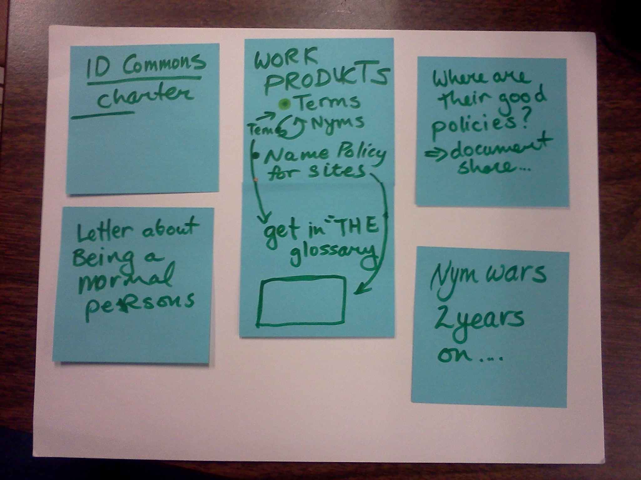 After lots of discussion, pretty much everyone agreed that NymRights *is* an important issue to take into account, and we moved to step 2, figuring out how to integrate it within IDESG. This is going to be a much longer process, as there are many moving parts. But the good news is, we made progress, and people are listening!